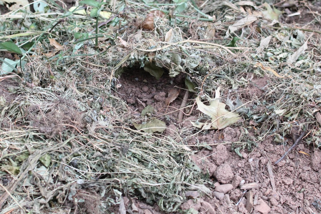 | August 25, 2015 This turtle made a temporary burrow where it was foraging during the day. It has an abrasion near the top of its shell. |