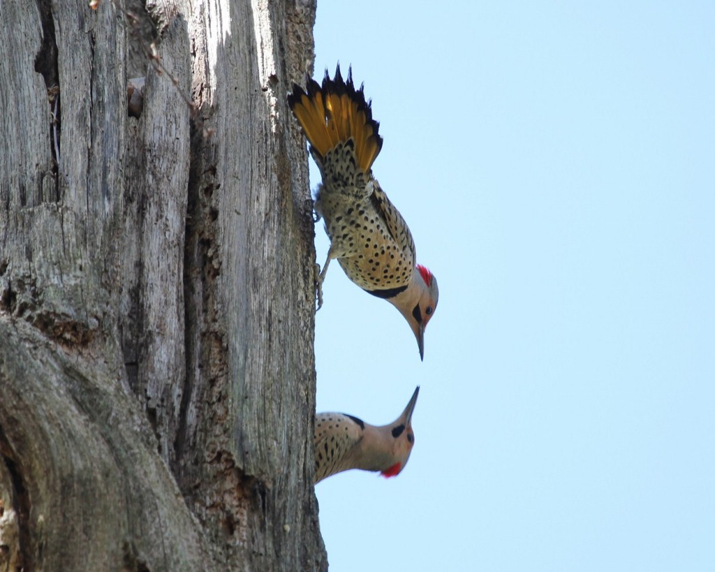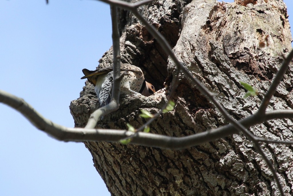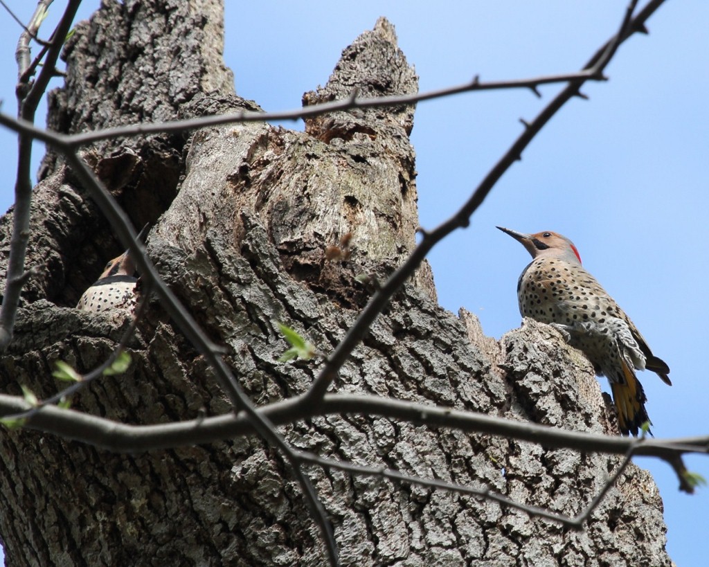 | April 17, 2012 An apparent territorial dispute between two males. One tries to chase the other out of the park. One took refuge inside a tree. There was a female nearby (last photo of the day). |