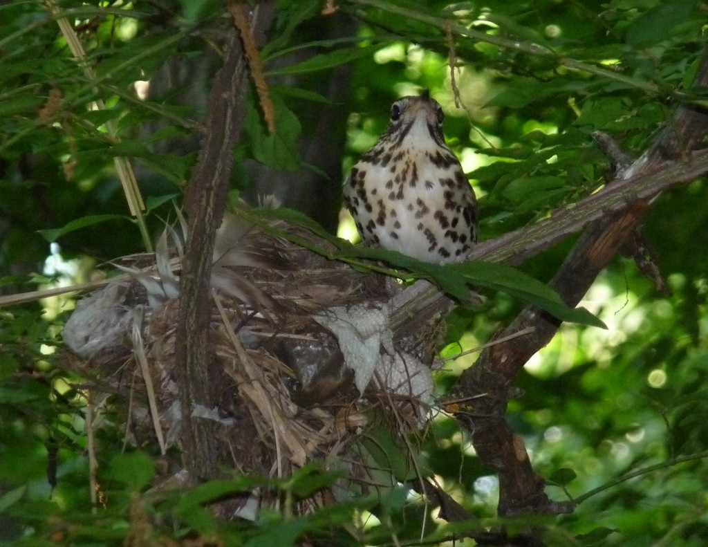 The pictures below show a Wood Thrush nest in Woodwild Park, with adult and several chicks.
