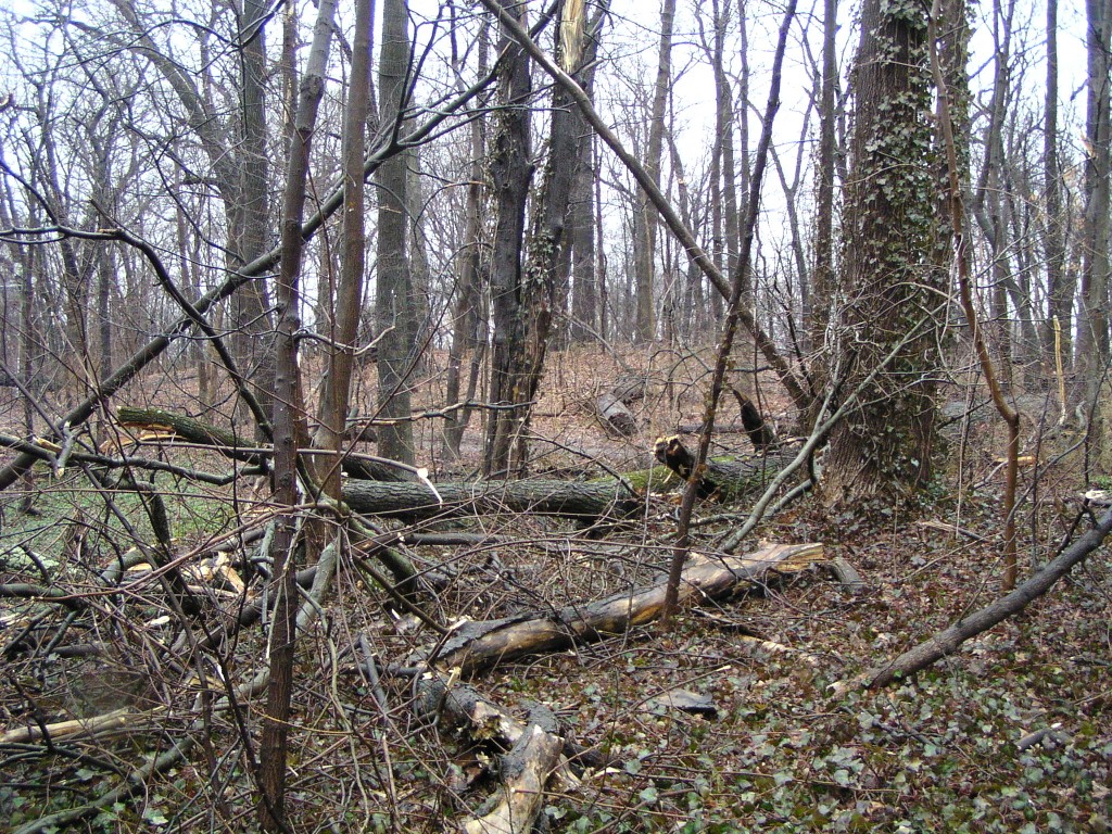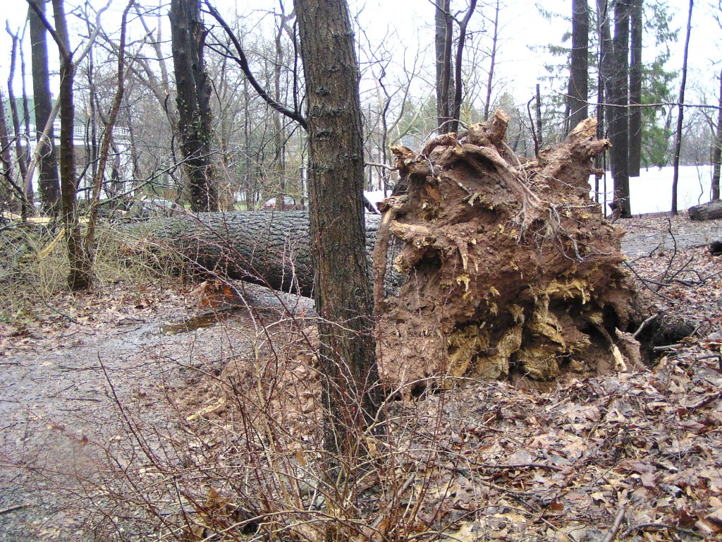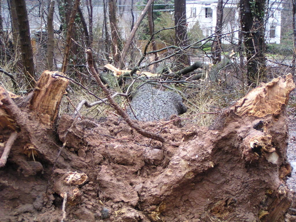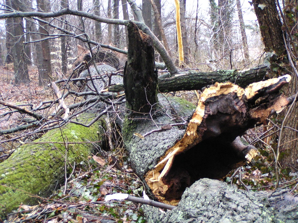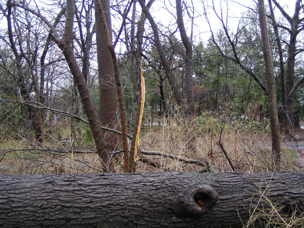 A fallen tall tree near the main entrance of the park.