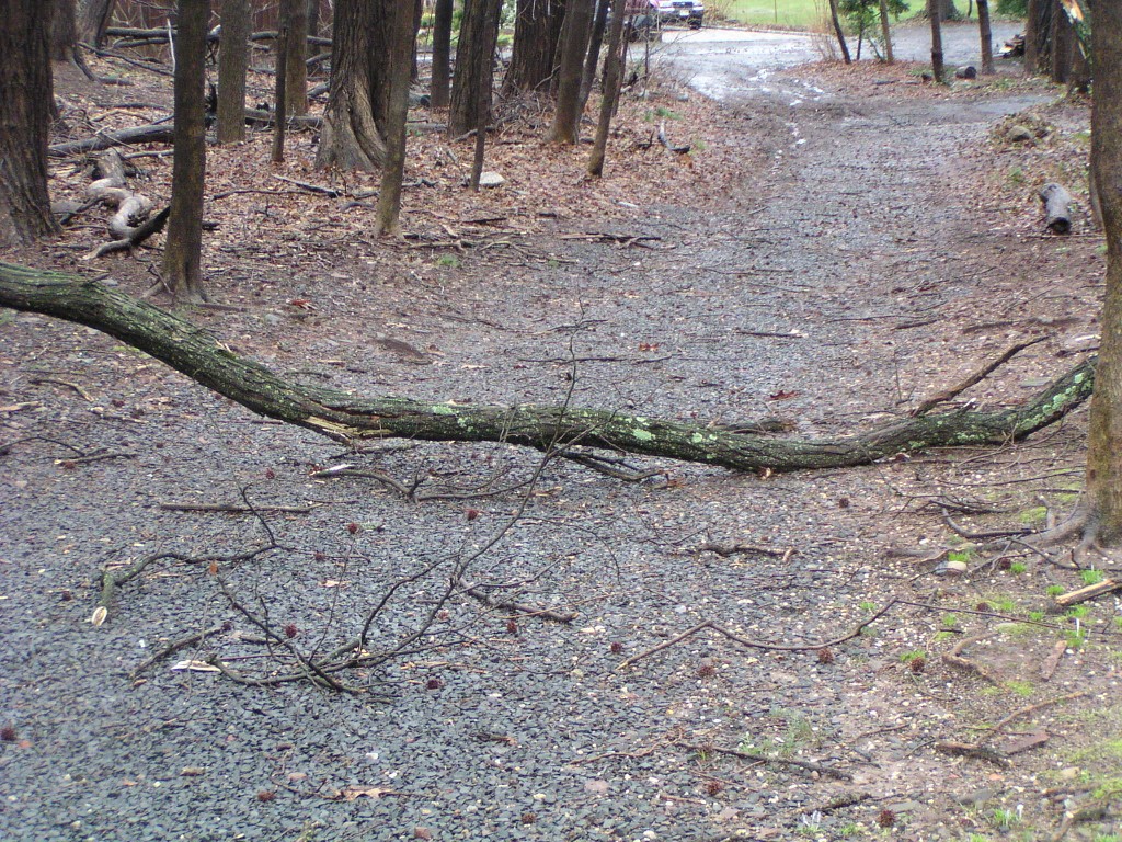 The path parallel to Oak Avenue, which is one of the best sledding trails in the park, was blocked by the top that fell out of a small, nearby tree.