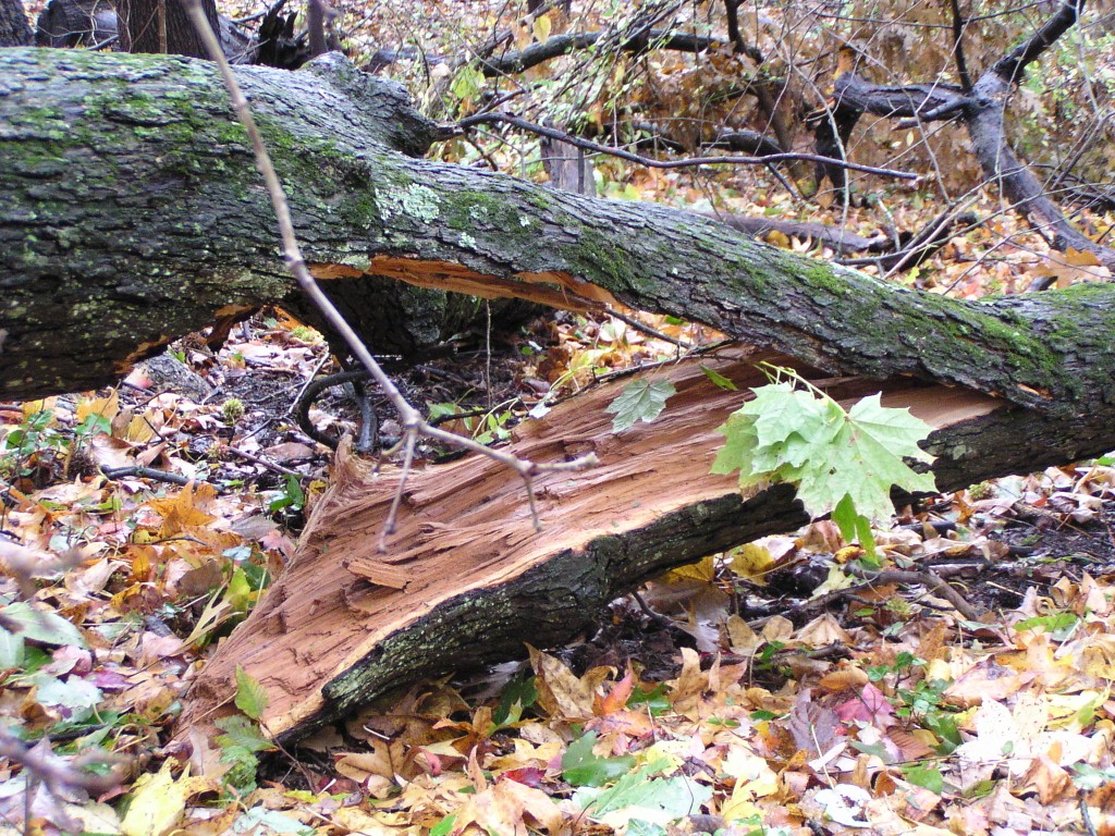 These pictures were taken after the storm, on October 30. They show close-ups of fallen branches, some with fungi or lichen.